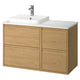 - The oak effect finish with a natural wooden look transforms the space into a relaxing, at-home wellness retreat. A contemporary expression enhanced with integrated handles, minimising unnecessary details.