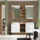 - This combination comprises 2 wash-stands with drawers and an open cabinet in the middle. The countertop space between the wash-basins is perfect for placing lotions, brushes or shavers while getting ready.