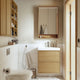 - The oak effect finish with a natural wooden look transforms the space into a relaxing, at-home wellness retreat. A contemporary expression enhanced with integrated handles, minimising unnecessary details.