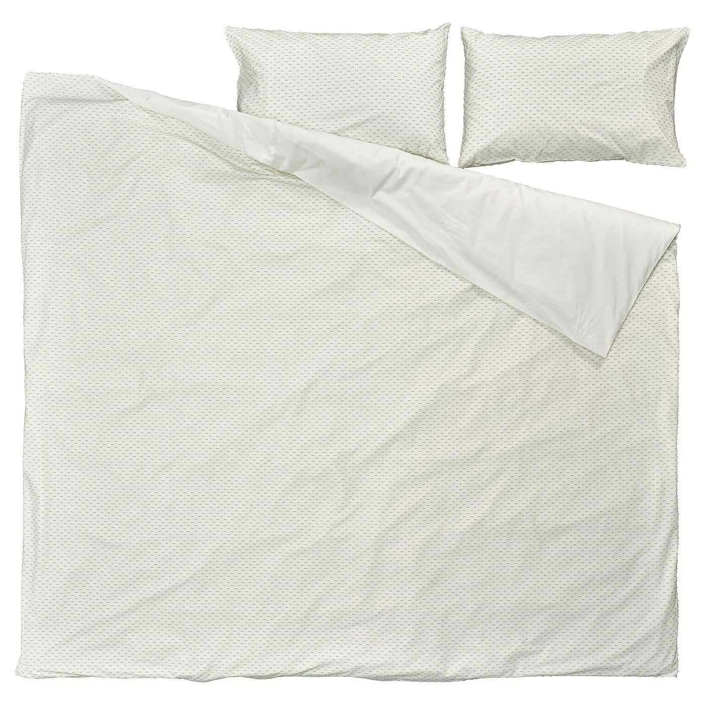 BANDKNIPPE duvet cover and 2 pillowcases, white/green, 220x240 cm