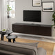 - A wall-mounted TV bench creates a clean, airy look and there are no legs that get in the way when you vacuum the floor.