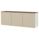 A sleek and practical sideboard combination with hidden storage behind doors and space for display on top. The top panel with walnut effect adds a warm look – and covers the joints between the three cabinets.