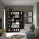 BILLY bookcase is a beloved icon that, thanks to its versatility, can be used in many ways. This solution with OXBERG glass doors offers generous storage with both closed and open shelves.