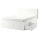 A bed frame with hidden storage in several places – perfect if you live in a small space. The BRIMNES series has several smart solutions that help you save space.