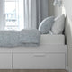 When you live in a small space you need to be clever. That’s probably why you’re looking at this bed frame with 4 spacious drawers. The BRIMNES series has several heroes that help you save space.