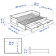 Dimensions Drawer height (internal): 21 cmLength: 205 cmWidth: 86 cmHeight: 57 cmDrawer width (internal): 87 cmDrawer depth (internal): 53 cmBed width: 160 cmBed length: 205 cmMaximum load/drawer: 20 kgMattress length: 200 cmMattress width: 80 cm