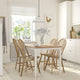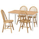 4-seat dining set with a traditional expression, made for a modern lifestyle with comfy, upholstered chairs and table with natural wooden veneer top and durable, sturdy steel legs with a turned wood look.