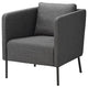 Go for stylish dark tones or brighten up your home with colourful covers. EKERÖ armchair has a sleek, modern look with two side pieces that meet in the back – and lumbar support for added comfort!