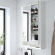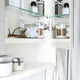 - Makes clever use of wall space, allowing you to hide cluttering items behind doors and keep everyday essentials like jewelry or contact lenses on the open shelf underneath.