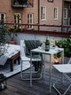 • The table is durable and easy to care for, as it is made of powder-coated steel.