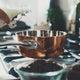 - The copper has a robust and tactile look that adds a soft touch to the kitchen, while providing an even and efficient heat transfer too.