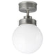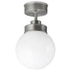 The soft, round shapes and use of metal and glass create a timeless look that resembles lamps of the past. It is approved for bathroom use and is also a good solution for hallways.