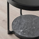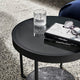 A round shape and different materials and finishes create a dynamic yet balanced look. This black side table combines a sleek modern expression with a sturdy construction and practical features.