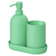 The light green glass adds pop of colour to your bathroom. The tray keeps the toothbrush holder and soap dispenser in place but can also be used separately for jewellery, candles or small accessories.