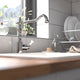 - An aerator integrated in the tap keeps the water flow just right while less water and energy is used.
