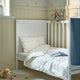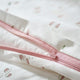 This crisp white duvet cover and pillowcase with pink flowers are both woven from GOTS-certified organic cotton that breathes, absorbs moisture and feels soft against your baby's skin.