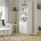 Use throughout the home, on its own or with other furniture in the HAUGA series. This high cabinet with 2 doors offers hidden and open storage – and the top shelf’s edge keeps all your things in place.