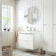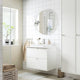 - What’s not to like? The clean, straight lines and a matt white finish give your bathroom a fresh and appealing character that is easy to personalise with your choice of knobs or handles.