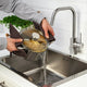 - The pot strainer means you can pour out cooking water directly from the pot without using either a colander or a strainer.