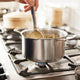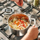 - The graduated interior of the pot and saucepan makes it easy to measure up liquid directly in the pans.