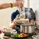 This stainless steel pot has a spout to make pouring and draining liquids easier and a heat resistant glass lid with a built in strainer. Perfect for when you are boiling pasta or making soup.