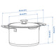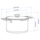 - This pot has a heat resistant glass lid with a built in strainer.