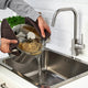 - The pot strainer means you can pour out cooking water directly from the pot without using either a colander or a strainer.