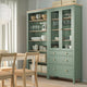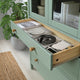 This pair offers plenty of closed and open storage. Both with a grey-green colour that brings nature's harmonious colour scale into your room – and stained shelves which highlight the beauty of the solid wood.