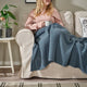 HUMLEMOTT throw in blue-grey provides a snuggable layer of warmth and comfort. Super soft, cotton feel knit with stable construction, made from 100% recycled polyester.