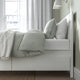 IDANÄS bed frame with storage is both eyecatching and practical. The built-in drawers make use of the space under your bed, and are also soft-closing. The timeless design is easy to love for a long time.