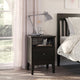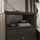 IDANÄS series has a timeless design with modern functionality. The bedside table with open and closed storage has a hole in the back for cables and matches perfectly with IDANÄS bed frames.