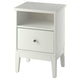 IDANÄS series has a timeless design with modern functionality. The bedside table with open and closed storage has a hole in the back for cables and matches perfectly with IDANÄS bed frames.