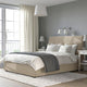 The sloping headboard and soft upholstery make IDANÄS ottoman bed extra comfortable. Classic button detailing is timeless, while the space under the bed adds generous everyday storage.