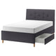 - IDANÄS upholstered storage bed has a thick, sloping headboard that provides comfortable support for your back - perfect for lazy mornings and long evenings when reading a newspaper or a book in bed.