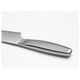 - The knife has a serrated edge which makes it easy to slice bread and cut soft vegetables such as tomatoes.