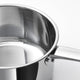 - Thick base with one layer of aluminium between two layers of stainless steel. Gives an even and energy-efficient heat, which reduces the risk of food burning and sticking.