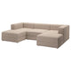 Enjoy long movie nights and comfy socialising with friends in JÄTTEBO modular sofa. Use this combination with two relaxing chaise longues as it is – or create a customised sofa for you and your home.