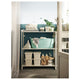 - This open shelving unit gives you a good overview and makes it easy to reach things like towels and detergents.