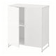 - By mounting the doors with back/side panels on a JOSTEIN shelving unit, you transform open shelves into a closed storage cabinet.