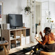 Standing or lying – the KALLAX series adapts to taste, space and budget. Personalise the shelving unit with inserts and boxes to make it suit your needs.