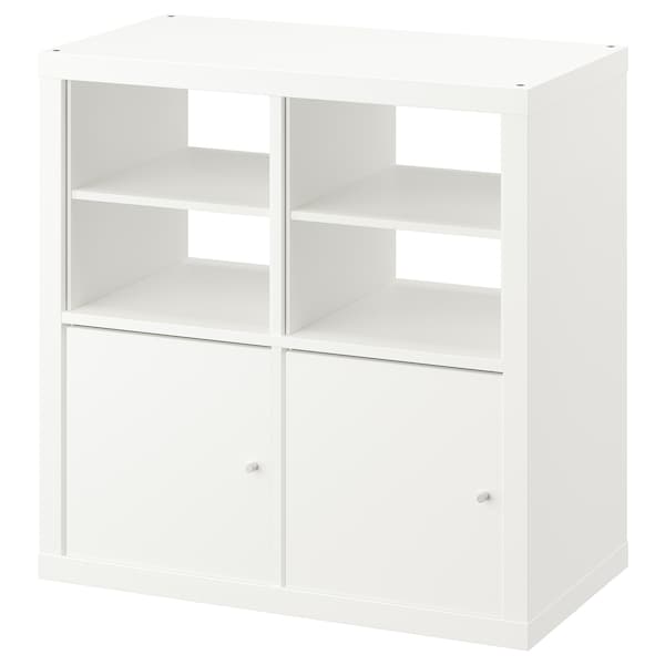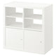 Hang this KALLAX combo on the wall or place it on the floor. The handy inserts hide things that tend to clutter and makes your space feel calmer.