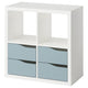 KALLAX shelving unit, with 4 drawers white/light grey-blue wave shaped, 77x77 cm
