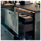 KNIVSHULT drawers are designed to create a uniform dark kitchen. The sleek finish pairs beautifully with dark METOD cabinets and complements many fronts in our range, offering a stylish and seamless look.