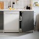 - The gap between the 2 base cabinets can be fitted with a dishwasher, small fridge or washing machine. The space can also be kept open to create a seating space.