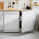 - The gap between the 2 base cabinets can be fitted with a dishwasher, small fridge or washing machine. The space can also be kept open to create a seating space.