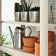 A practical storage solution with open shelves for garden tools and plant pots. It also has a spacious cabinet where you can store cushions or other things that you want to protect from sun, rain and dirt.