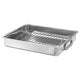 - A perfect all-in-one roasting tin for the oven or barbeque. At the bottom there is room for potatoes and vegetables and on the grill rack you can put chicken or steak.