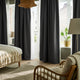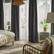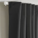 KORGMOTT block-out curtains in dark grey add charm with woven fabric on both sides and elegant texture. The dense fabric paired with eyelets form rounded, harmonious folds.