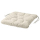 This comfortable cushion is ideal for outdoor use since the fabric is dyed in a way that makes it last longer in the sun. Ties keep the cushion in place and you can turn it over to use both sides.