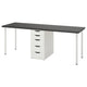 A big desk with plenty of space for a computer, papers and other things you want close at hand or stored in the drawer units. If you want company, there is even room for an extra chair.